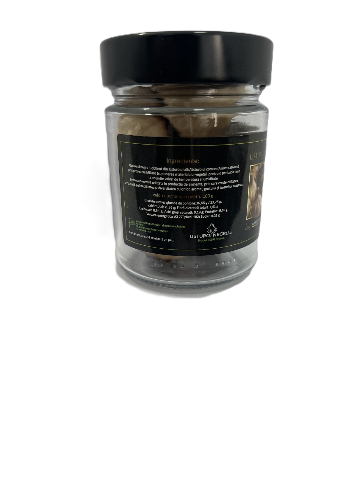 | Ingrediente | Bulbi de usturoi, usturoiul natural este fermentat la o temperatura joasa pentru o perioada indelungata astfel toate beneficiile si proprietatile usturoiului sunt amplificate. |